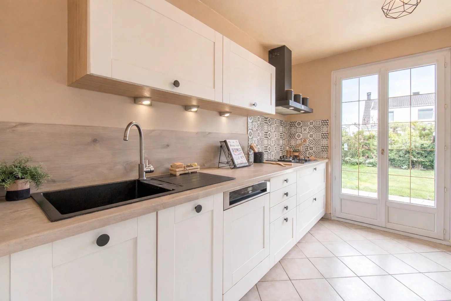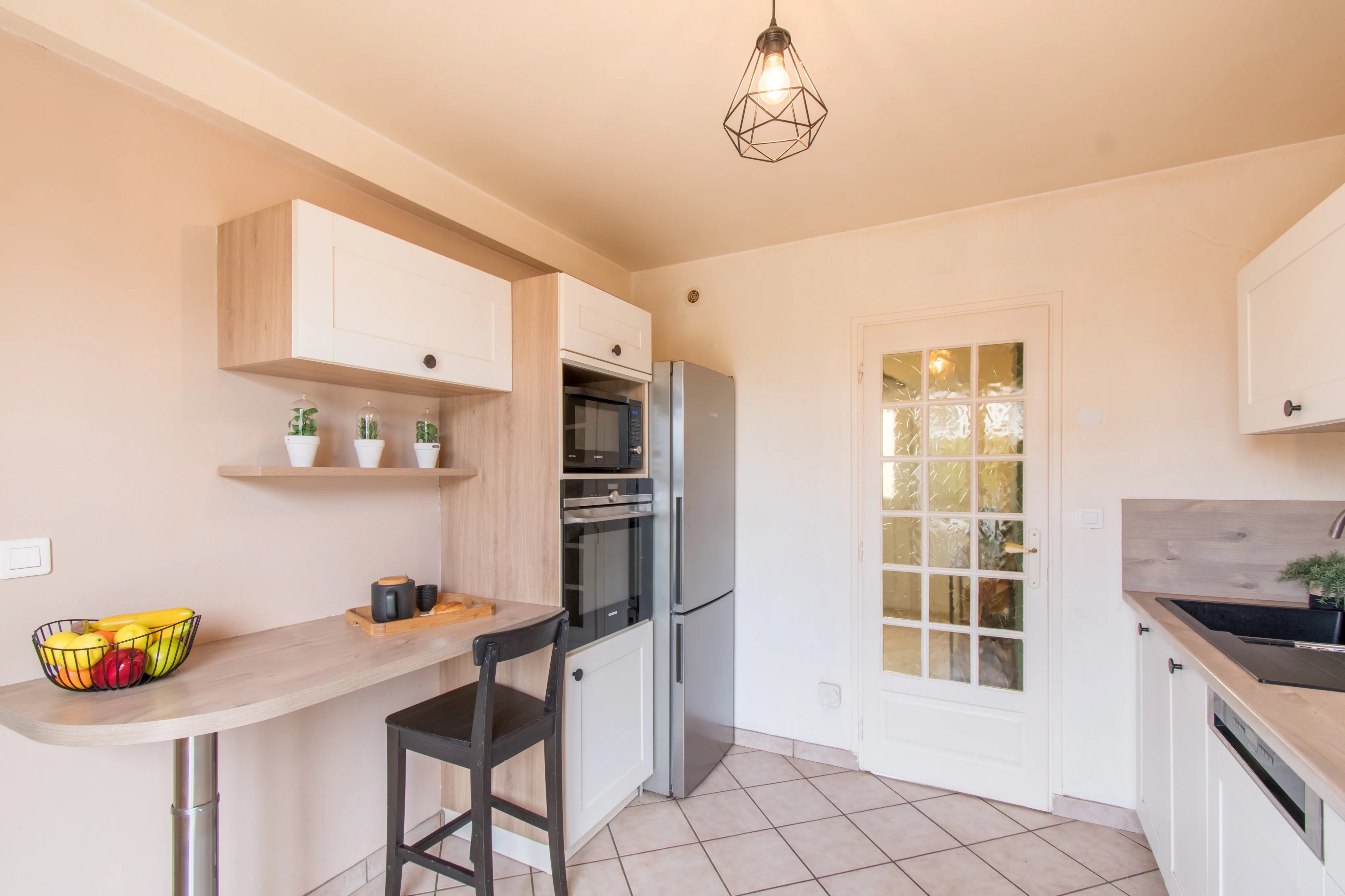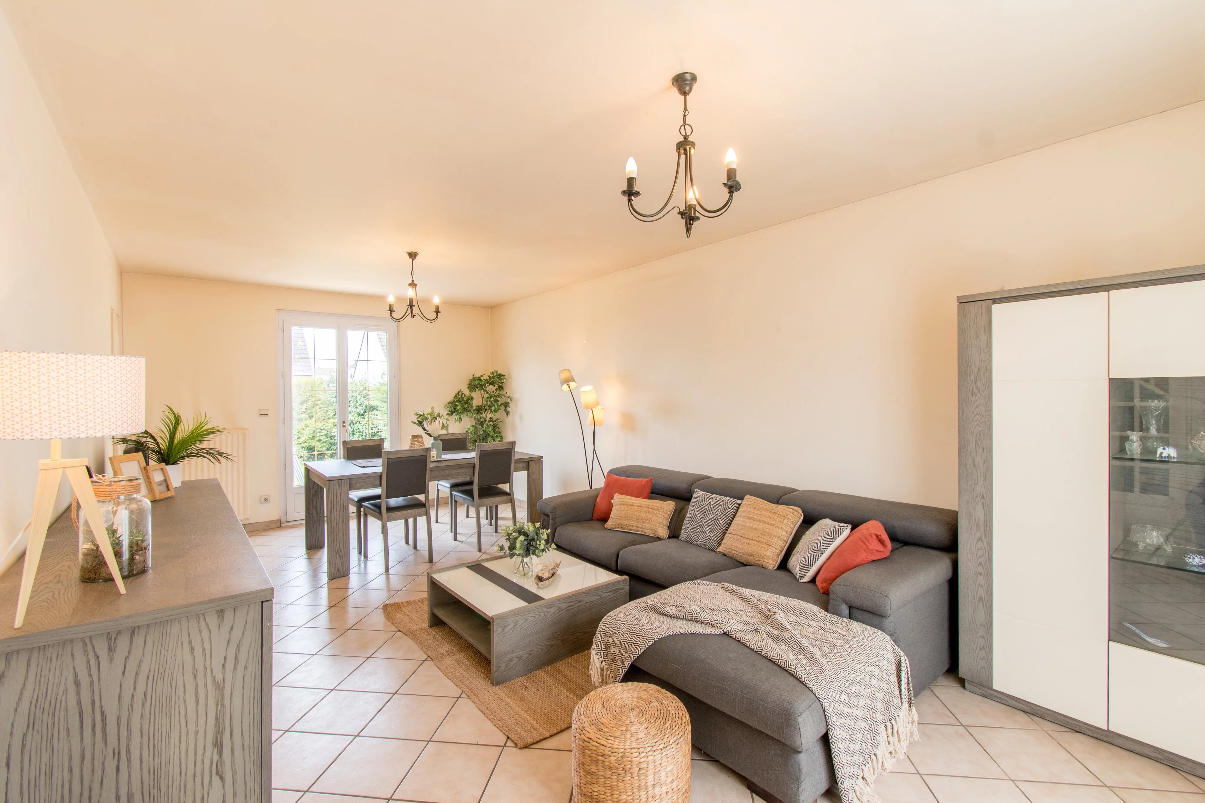 À l’extérieur, vous profiterez d’un terrain clos agrémenté de deux terrasses et d’un garage.