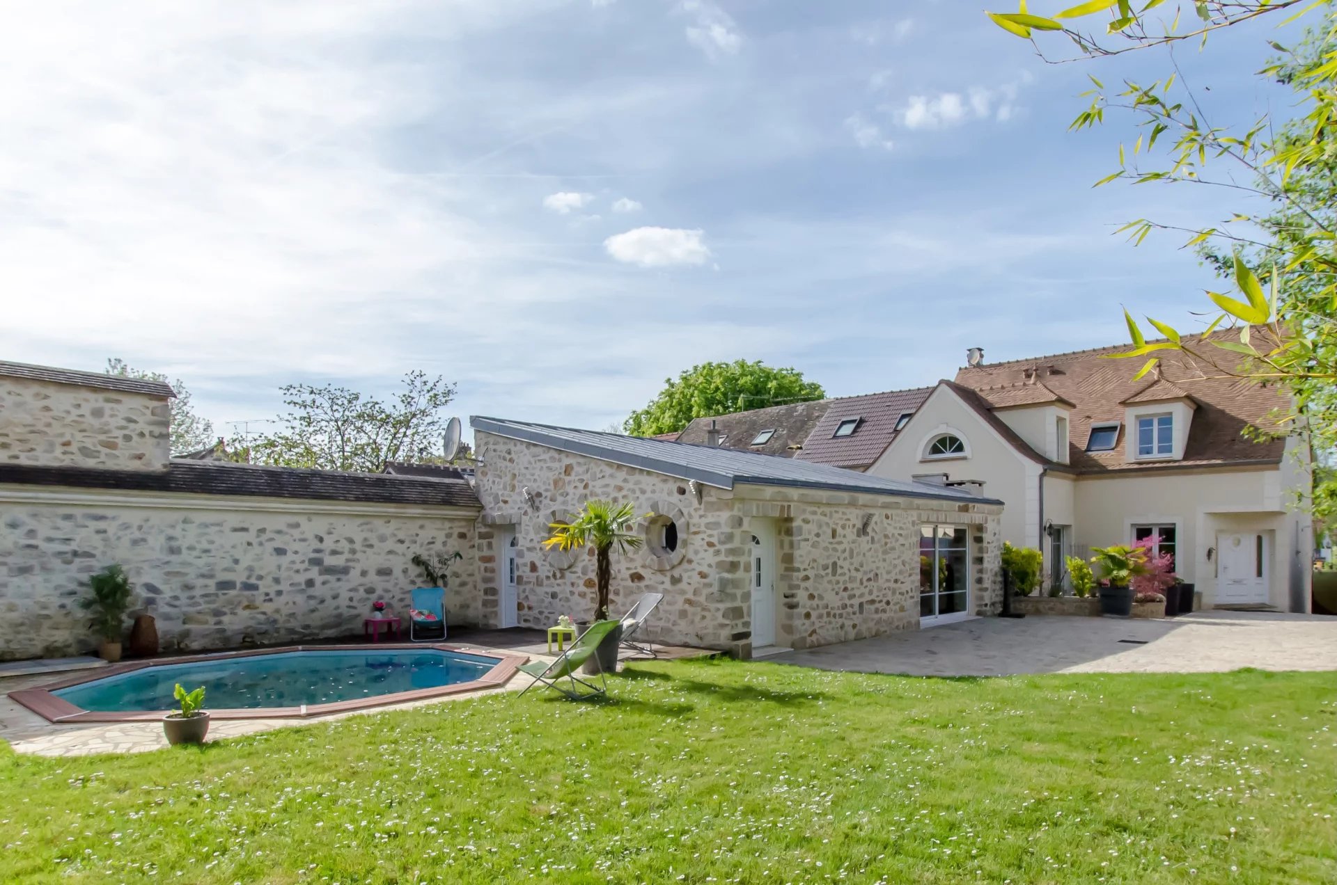 Plongez dans l'univers chaleureux de cette magnifique maison en pierres datant des années 1900, située à Janville-sur-Juine (à 5mn de Bouray), où le charme de l'ancien et le confort contemporain se conjuguent parfaitement. Cette propriété entièrement rénovée offre une maison principale de 225m² au sol, une maison d'amis de 60m2 au sol, un préau pour trois véhicules et une piscine chauffée. L'ensemble se situe sur un terrain de 900m², clos de murs en pierres et préservant votre intimité.